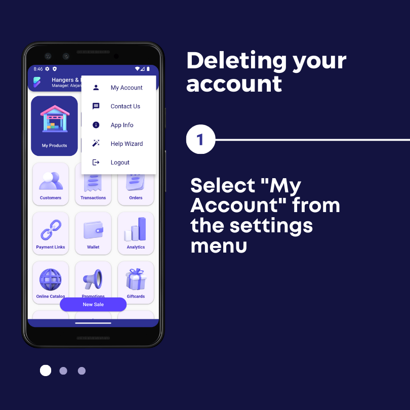 1. To delete your account, open the settings menu on the top right of your app, select "My Account"