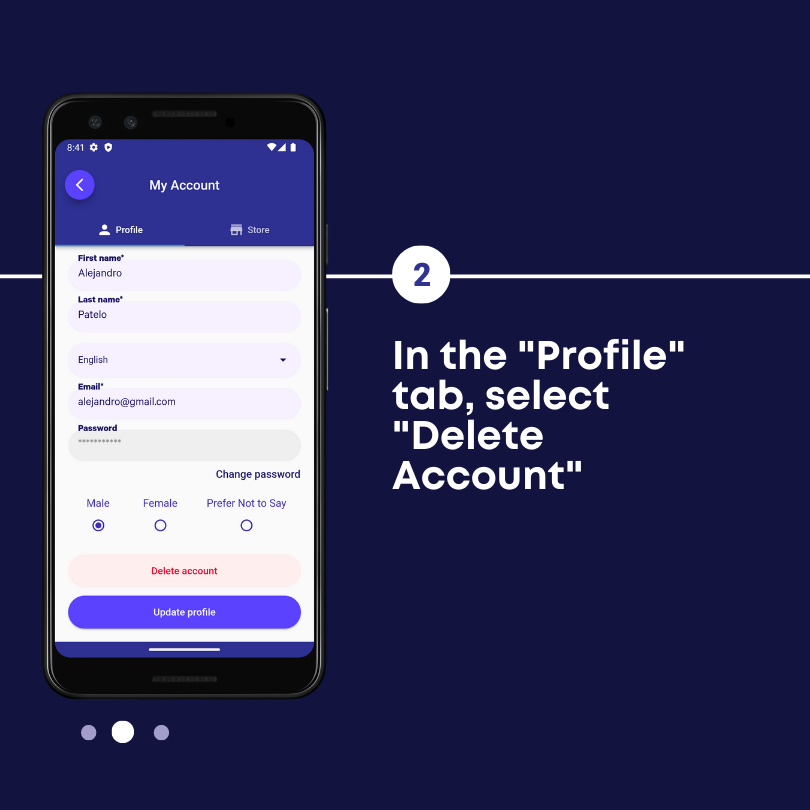 2. Select the "Profile" tab, then select "Delete Account"